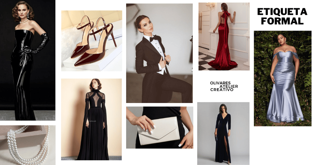 En eventos de etiqueta rigurosa, el código de vestimenta es muy estricto. Los vestidos largos son obligatorios, preferiblemente en siluetas clásicas como sirena, línea A o imperio, y en colores neutros o tonos joya. La joyería, el calzado, y el maquillaje también siguen normas estrictas.